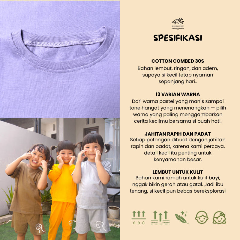 Jadilah yang pertama memberikan ulasan “Barooduck – Setelan Baju Anak Lengan Pendek Cotton Combed 30s Anak Laki Laki/Perempuan Usia 0-5 Thn – Warna Terang”