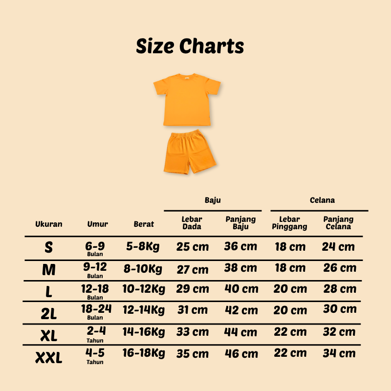 PENTING: Estimasi Usia & Berat Badan hanya PERKIRAAN. Patokan terbaik adalah mengukur si kecil (Lebar Dada & Panjang Celana) agar tidak salah pilih ukuran.